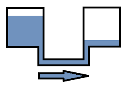 Nota: Ahora que ya entendemos como funciona el enfoque, no debería sorprender el nombre que recibe. El término principio de los vasos comunicantes viene de la analogía entre la lógica que propone con dos vasos conectados de tal forma que poco a poco uno va disminuyendo su volumen de líquido, mientras el otro va recibiendo el líquido que pierde este otro vaso.